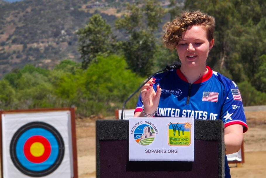 Mariko Nakawatase, representing Supervisor Joel Anderson‘s office, was there, along with Parks and Rec Director Jason Hemmens and his colleague Josh Bugiel, whose energy was instrumental in securing the park’s funding and official designation. Also present was one of the project’s earliest champions, a Navy SEAL turned adaptive archery advocate, Nicholas North, who laid much of the initial groundwork starting in 2020. But the day’s spotlight deservedly shone on Ellie Howe. She’s a powerhouse young archer, already on the US Under-18 Women’s Barebow Team. While her influential internship and powerful advocacy brought a groundswell of public support, it was the moment her efforts converged with the work of North and the vital project management by Bugiel that truly made the project take off like a rocket. The fact that she helped cut the ribbon felt like the perfect full-circle moment for a true community victory.
